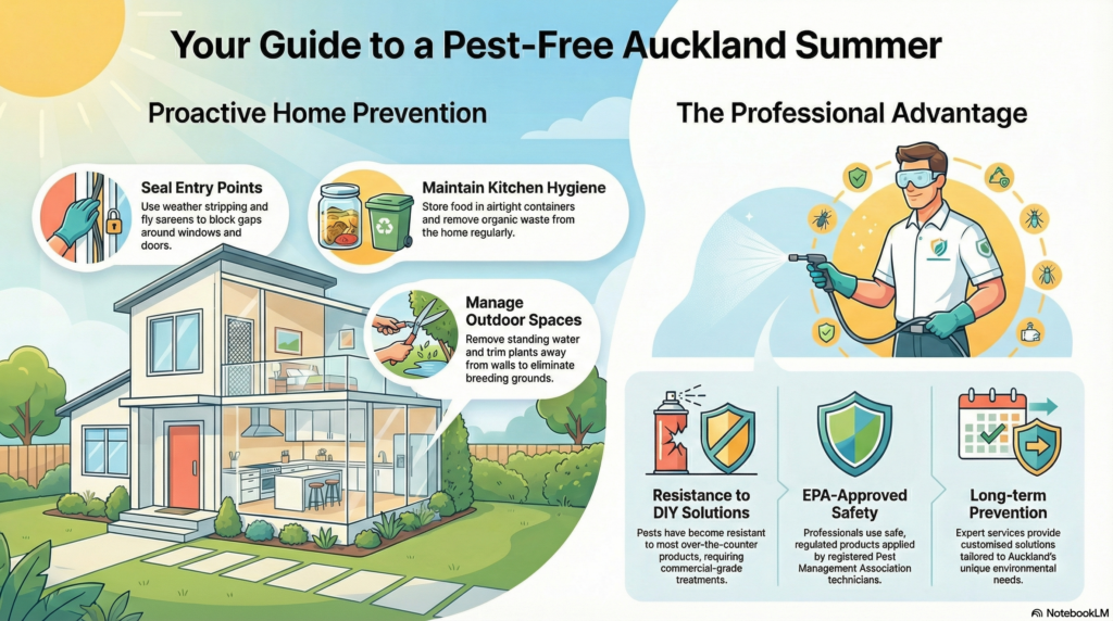 Summer pests can be a nuisance in Auckland, but with a few proactive steps, you can control pests at your property. By sealing entry points, maintaining cleanliness, and managing your outdoor area, you can make your property less attractive to pests.